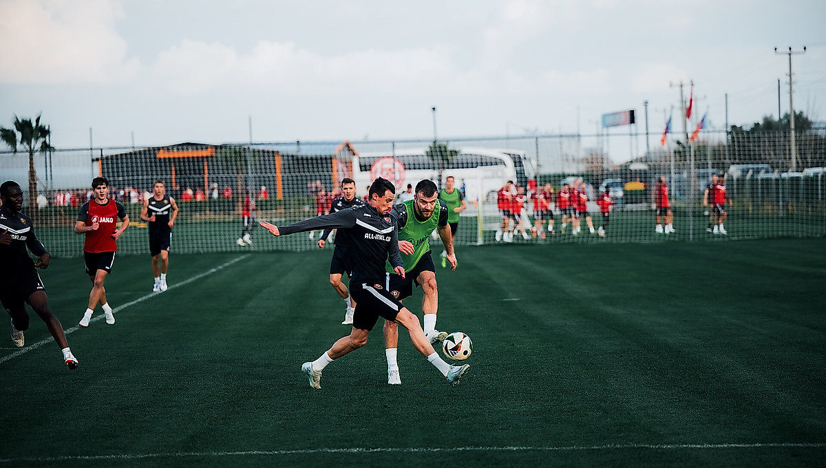 Der erste Trainingstag der Sportgemeinschaft an der türkischen Mittelmeerküste ist abgeschlossen. Zum Auftakt des Wintertrainingslagers schwitzten die Drittligaprofis erst im Kraftraum und am Nachmittag im „never give up Football Center“ auf dem Rasenplatz.
