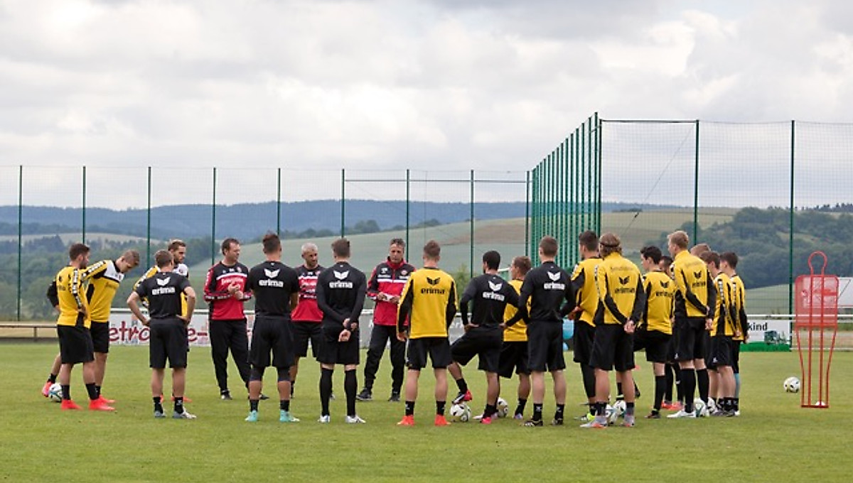 Für Montag sind zwei Trainingseinheiten um 10 Uhr und 16 Uhr auf der Sportanlage neben dem Mannschaftsquartier in Teistungen angesetzt.