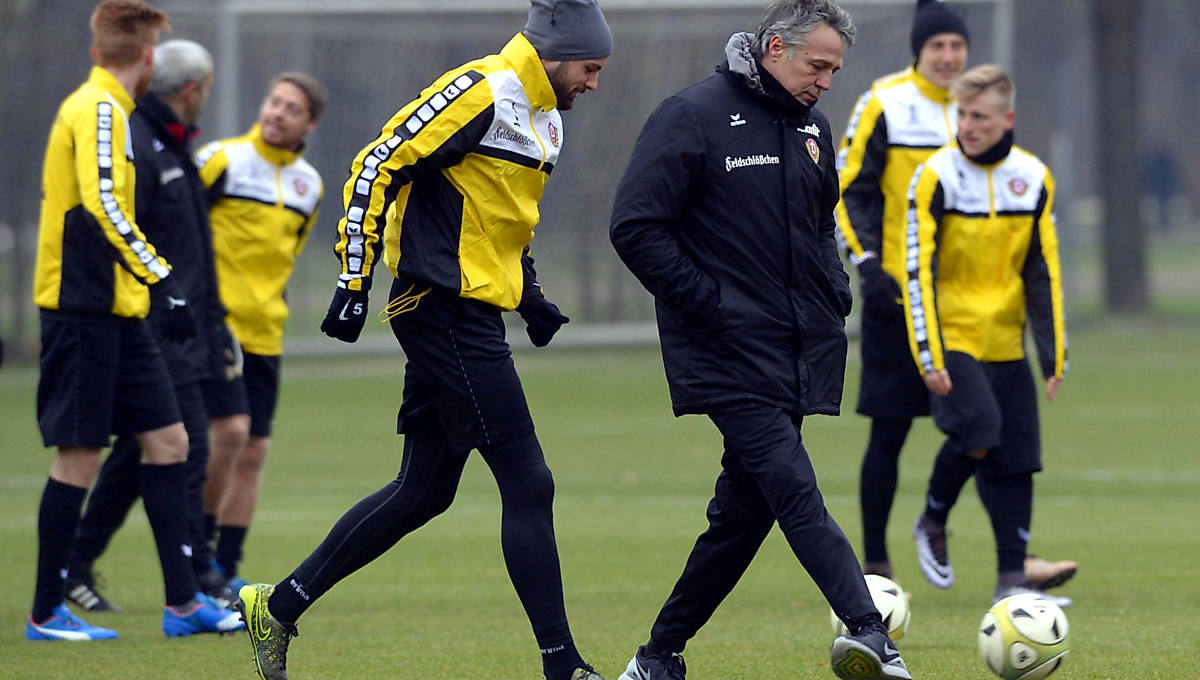 Uwe Neuhaus versammelte zur ersten Einheit im neuen Jahr 23 Feldspieler und fünf Torhüter auf dem Trainingsplatz im Großen Garten. Neben den Torhütern Janis Blaswich, Markus Schubert, Jeff Kornetzky und Trainingstorhüter Christian Tietz feierte Patrick Wiegers seine Rückkehr auf den Übungsplatz. Der 25-Jährige soll in den kommenden Wochen schrittweise wieder an die volle Belastung herangeführt werden.
