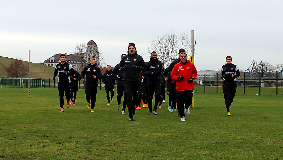 Die Drittliga-Profis der SG Dynamo Dresden haben am 3. Januar mit der Vorbereitung auf die Restrunde der laufenden Drittliga-Saison begonnen. Dynamos Geschäftsführer Ralf Minge und Robert Schäfer sowie Cheftrainer Stefan Böger begrüßten das Team am Samstagvormittag in der Kabine. Die drei Verantwortlichen schworen die Mannschaft mit einer Neujahrsansprache auf die anstehenden Aufgaben ein. In der Restrunde warten auf die Schwarz-Gelben noch 16 Drittliga-Spiele sowie mindestens eine weitere Partie im DFB-Pokal mit dem Achtelfinale Anfang März gegen den Champions-League-Teilnehmer Borussia Dortmund in Dresden.Stefan Böger versammelte zum Trainingsauftakt im neuen Jahr 23 Spieler auf dem Kunstrasenplatz im Sportpark Ostra. Darunter befanden sich mit Niklas Hauptmann und Niklas Landgraf zwei Nachwuchs-Talente. Die beiden U19-Spieler werden auch am Montag dabei sein, wenn ein Laktattest zur Leistungsdiagnostik angesetzt ist. Alle gesunden Spieler werden den Test absolvieren. Auch Benjamin Kirsten kann nach seiner Mittelhandfraktur bereits wieder mit der Mannschaft trainieren. Dynamos Torhüter absolviert jedoch vorerst keine torwartspezifische Trainingsformen.