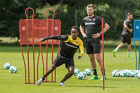 Für den Nachmittag hatte Peter Pacult eine zweite Trainingseinheit angesetzt. Zur Freude des Cheftrainers und der rund 100 Zaungäste konnte Mickael Poté zum Trainingsstart im Großen Garten sein Comeback ins Mannschaftstraining feiern. Der Franzose hatte sich am 18. März 2013 im Heimspiel der abgelaufenen Saison gegen den 1. FC Köln bei einem Pressschlag einen knöchernen Ausriss des Innenbandes im rechten Knie zugezogen und musste daraufhin operiert werden. Schon Tage vor seinen Mannschaftskollegen und dem offiziellen Trainingsstart war der 28-Jährige mit Physiotherapeut Tobias Lange auf den Übungsplatz zurückgekehrt, um den Rückstand nach seiner schweren Knieverletzung gegenüber seinen Teamkollegen weiter zu minimieren. Die Extraschichten haben sich jetzt bezahlt gemacht, sodass er am ersten Trainingstag nach dem Sommerurlaub sowohl am Laktattest als auch an der lockeren einstündigen Trainingseinheit am Nachmittag wieder voll mitziehen konnte. In den kommenden Tagen wird Dynamos Mannschaftskapitän die Belastung auch in individuellen Einheiten mit Fitnesstrainer Christian Canestrini weiter steigern.