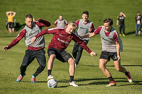 {media-left}Cheftrainer Cristian Fiel hatte seine Schützlinge am Vormittag von 10 bis 11.30 Uhr auf den Trainingsplatz gebeten. Mit dabei waren auch die angeschlagenen Spieler. Marco Hartmann (Muskelquetschung) stieg ins Lauftraining ein, Florian Ballas (Sprunggelenk), Leo Löwe (Oberschenkel) und Kevin Broll (Rücken) arbeiteten bereits wieder mit dem Ball.