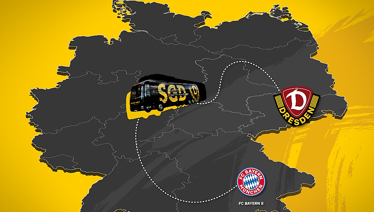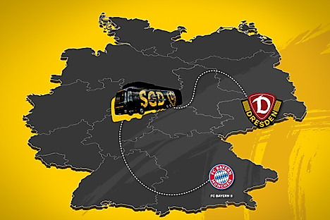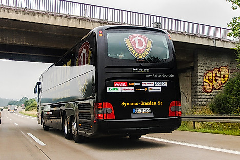 {media-left}Den weitesten Weg musste der schwarz-gelbe Tross dabei gleich bei der ersten Auswärtspartie am 2. Spieltag beim Karlsruher SC bewältigen: Mit Hin- und Rückfahrt standen nach der 2:4-Niederlage im Wildparkstadion 1.110 Kilometer auf dem Tacho des Dynamo-Busses.