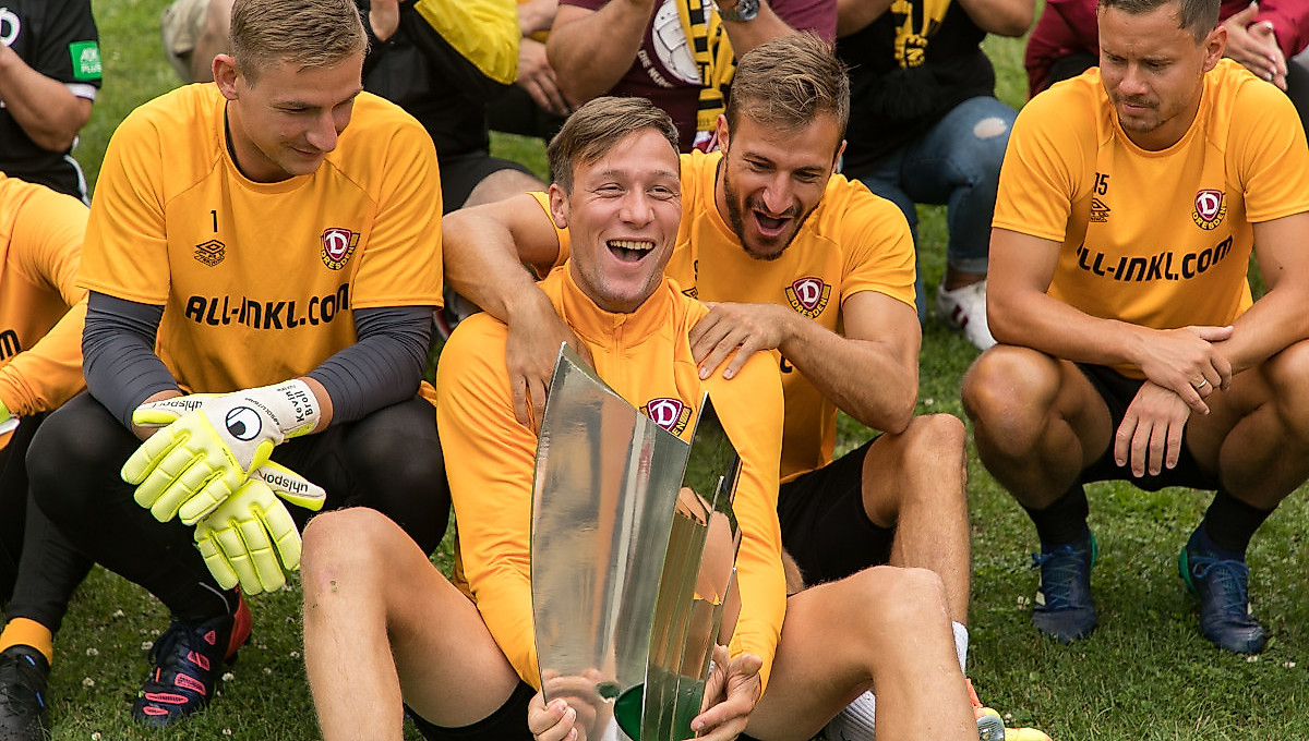 {media-right}„Vielen Dank an die Fans und auch an die gesamte Mannschaft für diesen speziellen Moment und dieses besondere Erinnerungsfoto. Auch wenn der Fokus natürlich schon längst voll und ganz auf der kommenden Spielzeit in der 2. Bundesliga liegt, war es schön für mich, den Pokal einmal selbst in den Händen zu halten“, sagte Tim Knipping nach der nachmittäglichen Trainingseinheit.
