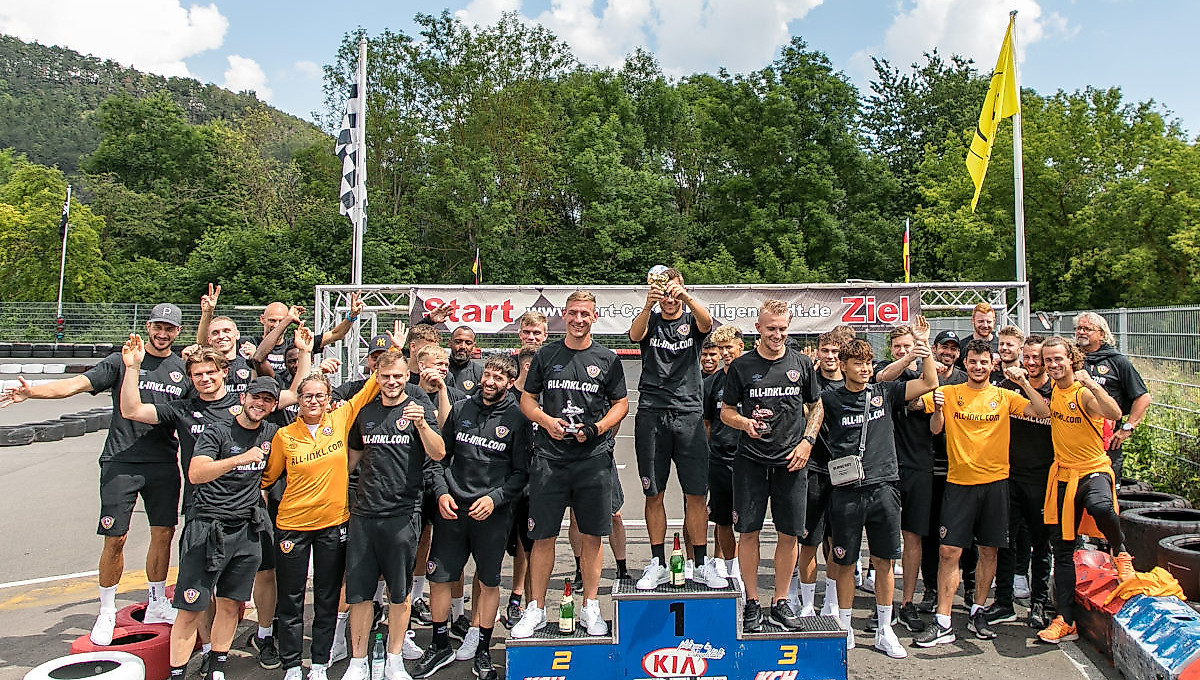 Nach der obligatorischen Corona-Testung fuhr der gesamte Dynamo-Tross als Teambuilding-Maßnahme auf eine Kartbahn in Heilbad Heiligenstadt. In drei vorher ausgelosten 11er-Gruppen duellierten sich Spieler, Trainer und Staff zunächst in einer Vorrunde.