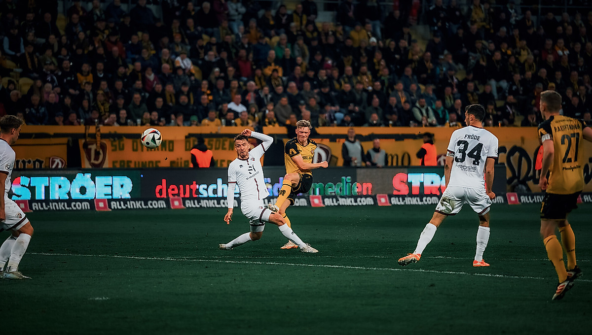 Doch auch diesmal ließ sich Dynamo vom Gegentreffer nicht beirren und blieb dominant: Ein Kopfball von Lukas Boeder zur Riesenchance auf den erneuten Ausgleich ging knapp am rechten Pfosten vorbei (53.).