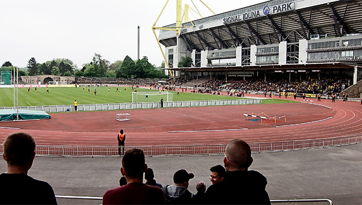 Die SG Dynamo Dresden gewinnt das dritte Spiel in Folge und setzt sich bei Borussia Dortmund II mit 3:2 durch. Michael Hefele brachte die Gäste nach einer Stefaniak-Ecke früh in Führung, Amini egalisierte durch einen abgefälschten Schuss fast umgehend. Die erneute Führung nach einem Stefaniak-Eckball durch Marco Hartmann war glücklich, weil die Borussen im ersten Durchgang klar spielbestimmend waren und die besseren Chancen verzeichneten. Nach der Pause fand die SGD besser ins Spiel und baute die Führung durch Dürholtz‘ Schuss aus spitzem Winkel aus. Mit einer der wenigen klaren Aktionen stets bemühter Gastgeber stellte Harder noch einmal den Anschluss her. Doch trotz Dortmunder Schlussoffensive behielt die Sportgemeinschaft die Oberhand und hätte durch Stefaniak nach einem Konter fast noch das vierte Tor erzielt. Weil Mainz in Halle dreifach punktete, bedeutete die Niederlage für die Gastgeber den Abstieg in die Regionalliga.