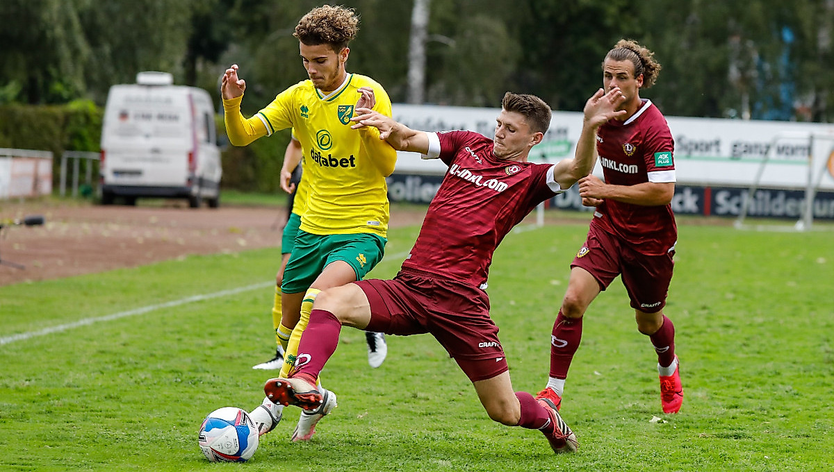 Am Nachmittag des vorletzten Tages des Trainingslagers in Heilbad Heiligenstadt stand für die Sportgemeinschaft das insgesamt vierte Testspiel der Sommervorbereitung gegen Norwich City an. Im rund 170 Kilometer entfernten Delbrück unterlagen die Schwarz-Gelben dem englischen Premier-League-Absteiger mit 0:2 (0:1).„Die erste Halbzeit war nicht gut. Da waren wir immer einen Schritt zu spät. Mit der zweiten Hälfte bin ich zufrieden, weil wir dort besser im Spiel waren und uns auch ein paar Möglichkeiten herausgespielt haben. In den nächsten zweieinhalb Wochen haben wir noch viel Arbeit vor uns, aber ich denke, dass wir auf dem richtigen Weg sind“, erklärte SGD-Cheftrainer Markus Kauczinski im Anschluss an die Partie.