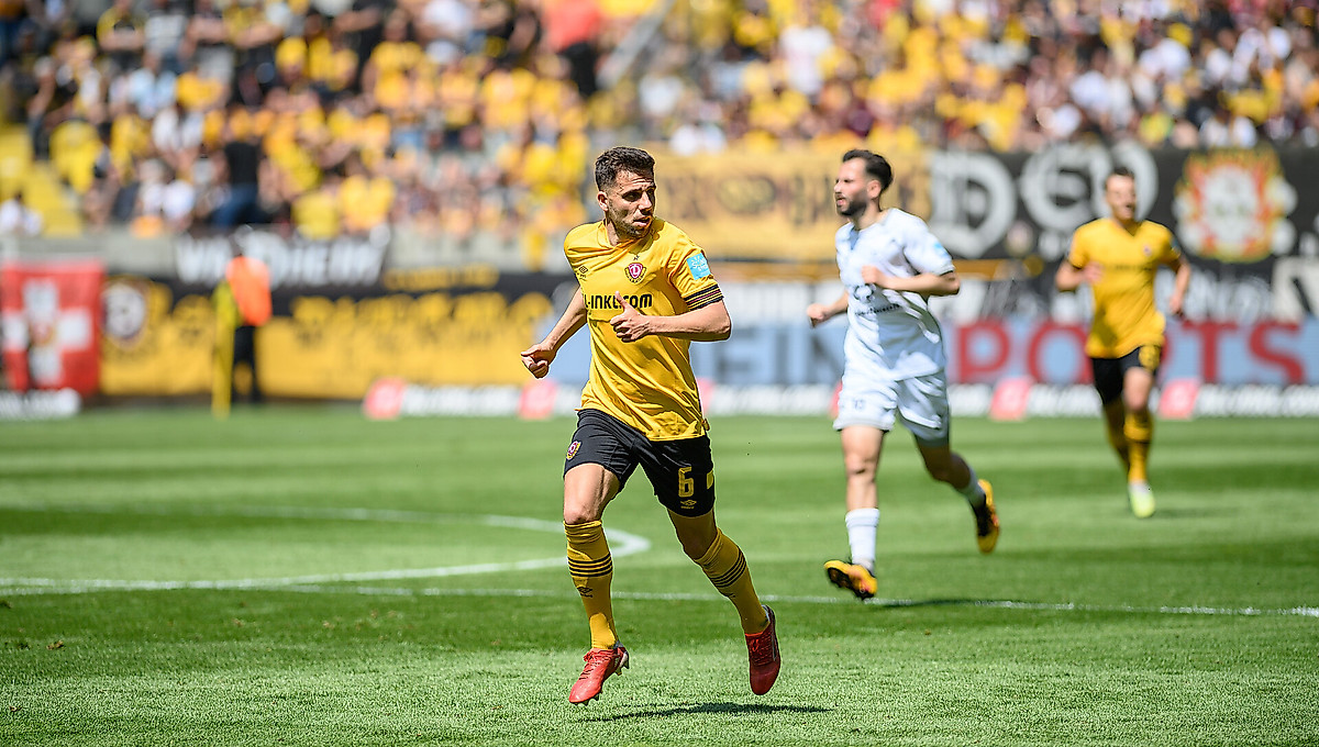 Und dann wurde es laut im Rudolf-Harbig-Stadion: Nach einem Zuspiel von Manuel Schäffler schob Arslan den Ball souverän aus rund zehn Metern Torentfernung vorbei an Dornebusch ins rechte Eck (87.). Die knappe Führung behaupteten die Dresdner auch über die fünfminütige Nachspielzeit und holten so zum letzten Spieltag nochmal drei Punkte.