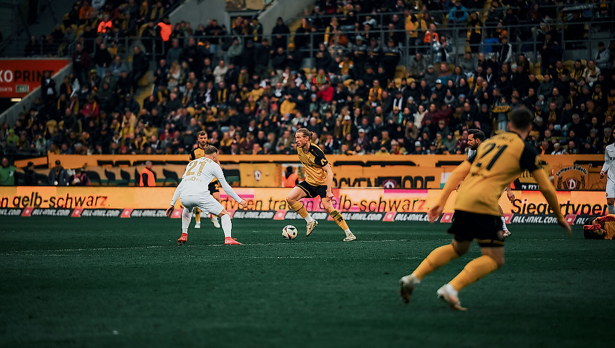 In der 56. Spielminute zappelte der Ball dann aber im Netz: Hauptmann nutze eine Unsicherheit in der Wiesbadener Defensive und fing einen zu kurzen Rückpass ab. Dynamos Mittelfeldspieler behielt die Übersicht und legte quer auf Daferner, der die Kugel nur noch zum 2:0 über die Linie drücken musste.