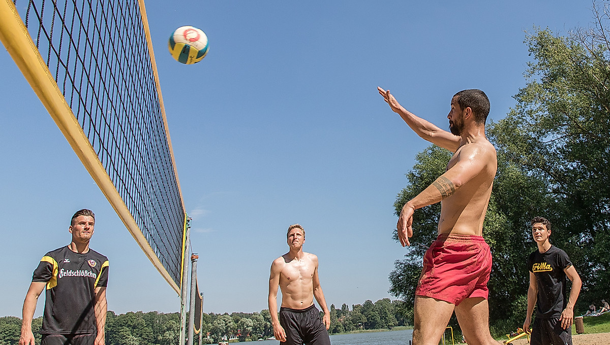 Tag 5 im Lauftrainingslager stand im Zeichen der Regeneration. Am Vormittag hatte Uwe Neuhaus die achte Einheit im Camp angesetzt – das Testspiel gegen Zehdenick am Vortag mitgerechnet. Aber nicht nur angesichts der Hitzewelle verordnete Dynamos Cheftrainer seiner Mannschaft eine dosierte Belastung. Es ging vor allem darum, die Beine nach den Anstrengungen der letzten Tage etwas zu lockern. Gründliches Auslaufen, Ballarbeit und Eisbäder standen im Mittelpunkt.„Es war sehr wichtig, dass jeder von uns schon in den letzten zwei Urlaubswochen individuelle Läufe absolviert hat. So haben wir uns auf das Trainingslager optimal vorbereitet und können hier sehr effektiv arbeiten“, sagte Aias Aosman, der wie fast der gesamte Kader gegen Zehdenick 45 Minuten abgespult hatte. „Für uns alle ist diese Phase etwas ganz Besonderes, denn wir wissen, dass wir im August in die 2. Bundesliga starten und im Pokal direkt auf einen Bundesligisten treffen. Die nächste Saison wird eine große Herausforderung, auf die wir uns sehr freuen. Das merkt man allen an.“