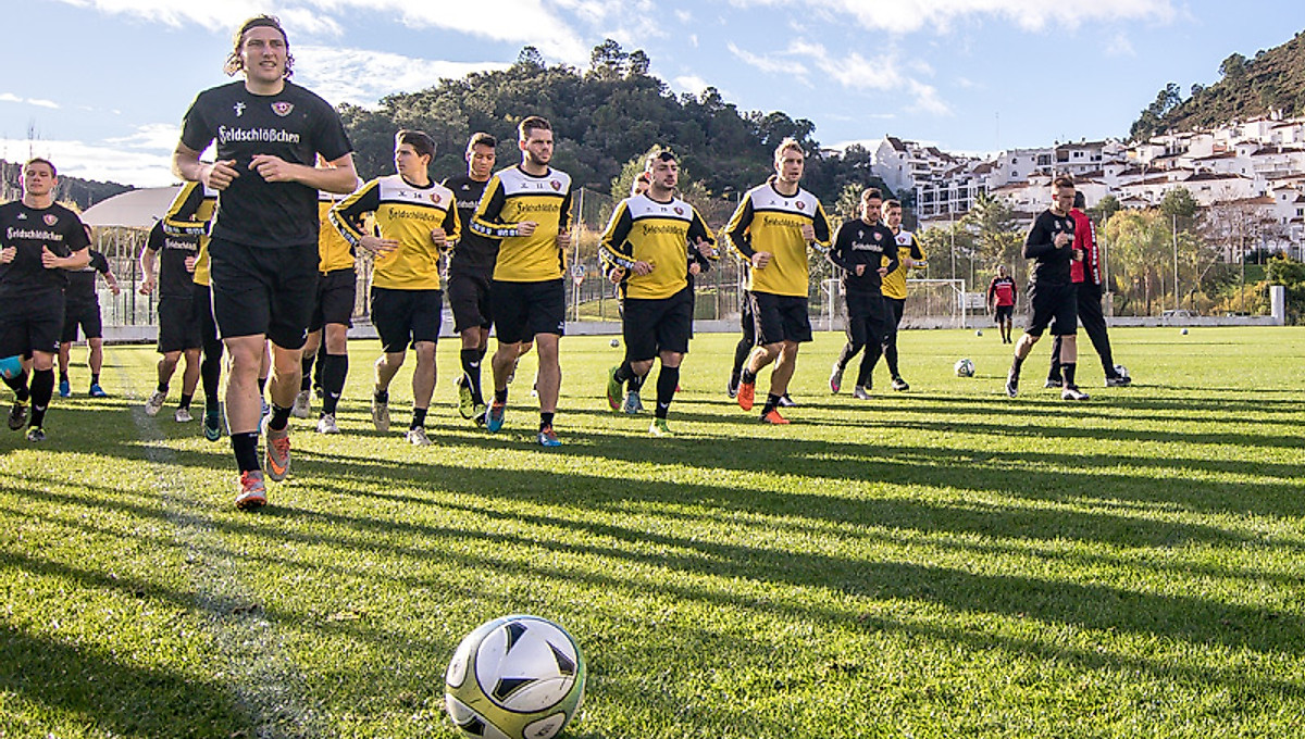 An Tag 2 im Wintertrainingslager in Benahavís waren zwei Einheiten angesetzt. Cheftrainer Uwe Neuhaus bat seine Schützlinge am Samstag um 10 und um 16 Uhr auf den Rasen der Anlage direkt gegenüber vom Mannschaftshotel.