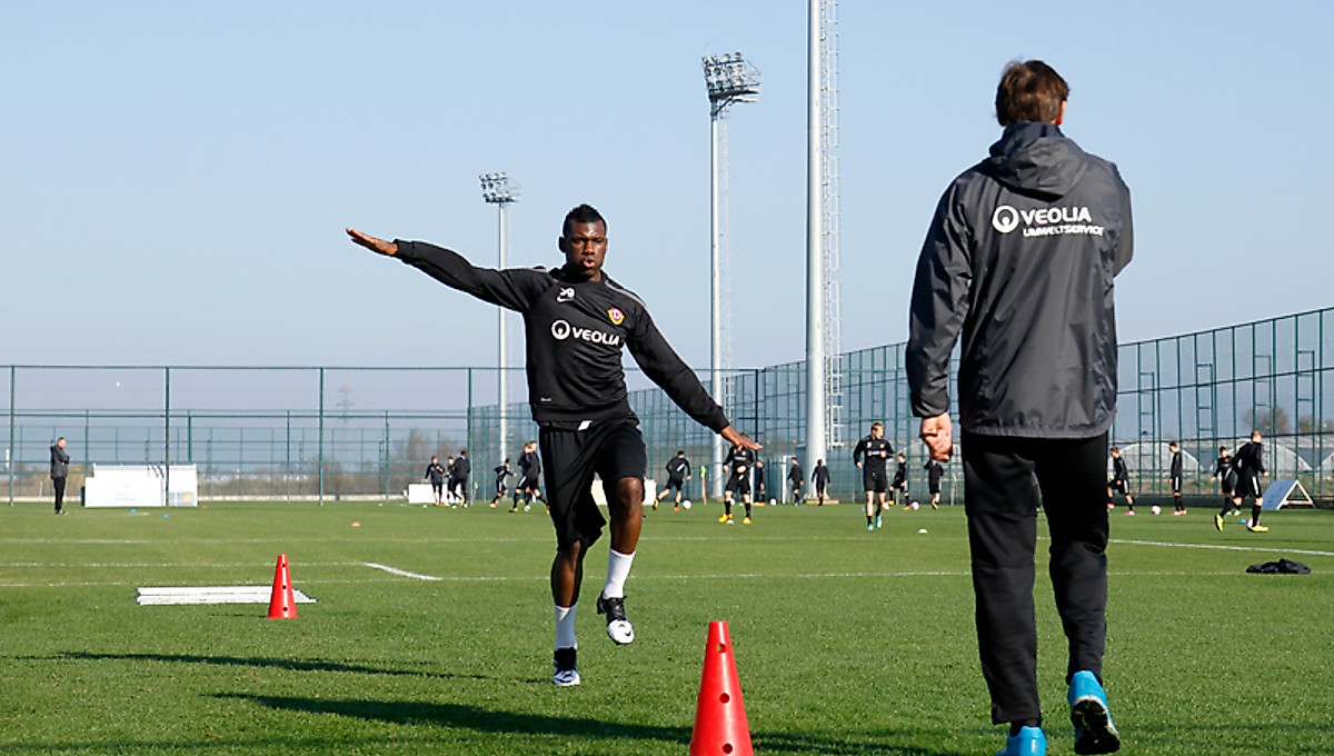 Die Zweitliga-Profis schwitzen bei strahlendem Sonnenschein auch am dritten Trainingstag in Folge. Am Dienstag absolvierten die Schützlinge nach dem 2:1-Testspielerfolg am Vortag gegen Darmstadt die Trainingseinheiten fünf, sechs und sieben im Türkei-Camp. Lynel Kitambala betrat dabei erstmals mit seinen Teamkollegen gemeinsam den Trainingsplatz. Bisher arbeitete der Franzose individuell im Hotel an seiner Rückkehr ins Mannschaftstraining. Am Dienstag konnte Kitambala nun erstmals wieder Fußballschuhe überstreifen und absolvierte eine Einheit – im Einzeltraining mit Dynamos Fitnesstrainer Christian Canestrini neben seinen Teamkameraden – auf dem grünen Rasen. Die Rückkehr des Franzosen ins Mannschaftstraining ist im Moment aber noch nicht absehbar.