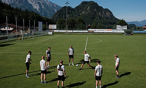 Im Anschluss an ein gemeinsames Frühstück wurde sich um 9.30 Uhr erstmal eine Runde aufs Rad geschwungen. Gemeinsam mit den Trainern umfuhr die Mannschaft den Walchsee – eine Runde von knapp sechs Kilometern – und endete im anschließend nochmal auf dem Trainingsplatz. Nach einer kurzen Erwärmung, bei der der Fokus vor allem auf Mobilität und Koordination gelegt wurde, kamen die Jungs beim Fußball-Tennis oder Eckchen-Spiel noch ein wenig ins Schwitzen.