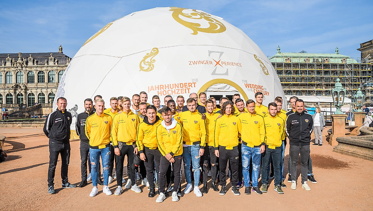 Als kleines vorgezogenes Abschiedsgeschenk hat Dr. Christian Striefler, Geschäftsführer der Staatliche Schlösser, Burgen und Gärten Sachsen gGmbH, am Mittwochmittag nun den Dynamo-Tross in einem der bekanntesten Barockbauwerke Deutschlands offiziell in Empfang genommen und in die große weiße Filmkuppel eingeladen.
