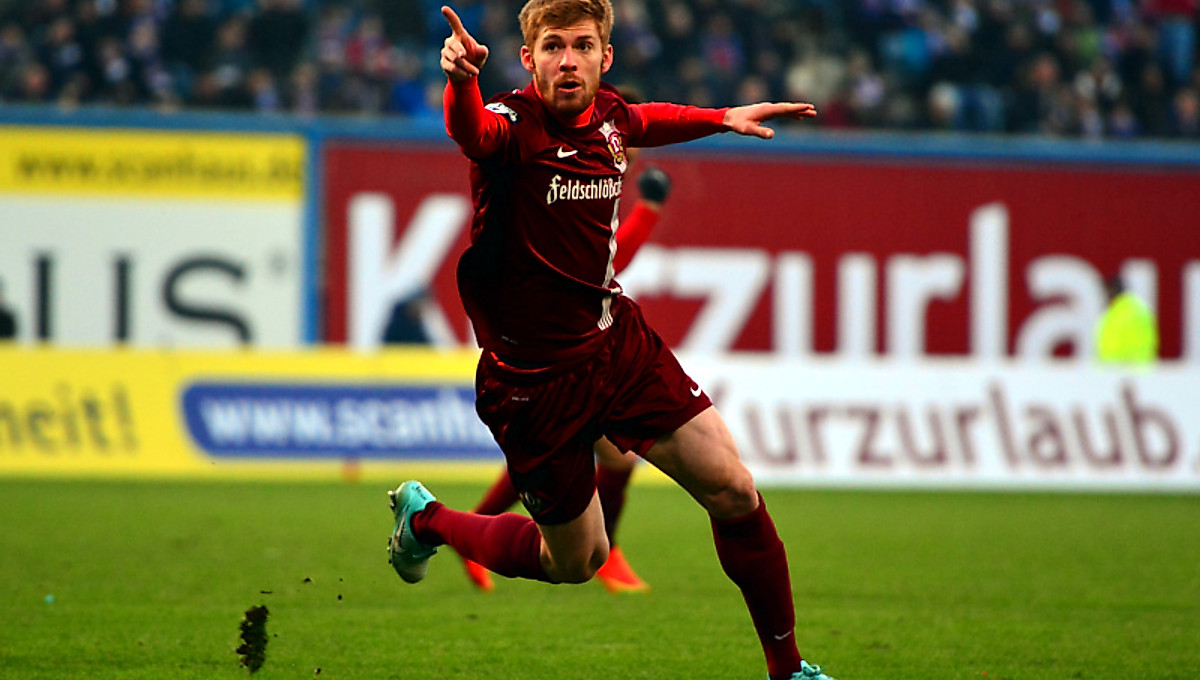 Mathias Fetsch hatte die SG Dynamo Dresden am vergangenen Samstag mit seinen drei Treffern quasi im „Alleingang“ zum 3:1-Auswärtssieg beim F.C. Hansa Rostock geschossen.