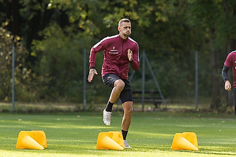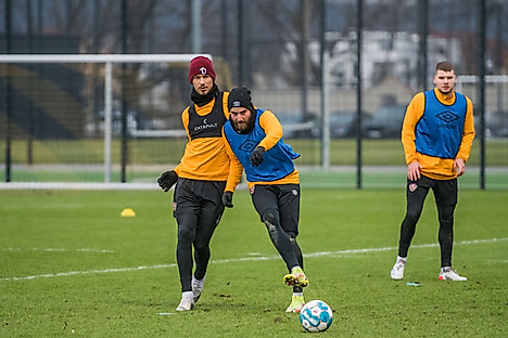 Der Schwerpunkt der Trainingseinheit am Dienstagmorgen lag auf zwei Spielformen: Das Trainerteam arbeitete mit der Mannschaft am defensiven Zweikampfverhalten sowie am laufintensiven Umschaltspiel über das gesamte Spielfeld. Mit Flanken und Torabschlüssen wurde der Trainingstag beendet.