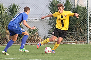 Ein doppelter Mickael Poté und ein Tor von Neuzugang Dmitri Khlebosolov sicherten der SG Dynamo Dresden im Testspiel gegen den österreichischen Zweitligisten SV Horn einen 3:1-Sieg. Auf der Sportanlage des Hotels "Titanic" stellte Chefcoach Peter Pacult mit Tobias Kempe den zweiten Neuen in die Startelf. Der aus Paderborn nach Dresden gewechselte Mittelfeldspieler besetzte zunächst die rechte Außenbahn, wechselte später mit Idir Ouali aber immer wieder die Seiten, um das Sturmduo aus Tobias Müller und Poté mit Zuspielen zu füttern. Auf der Torwart-Position gab Pacult jedem Keeper jeweils 30 Minuten Spielzeit. Allerdings hatten alle drei kaum die Möglichkeit, sich gegen die offensiv harmlos agierenden Alpenkicker zu beweisen. Damit dürfte das Rennen um den Platz im Tor für den Rückrundenstart gegen den MSV Duisburg bis zuletzt sehr spannend bleiben.