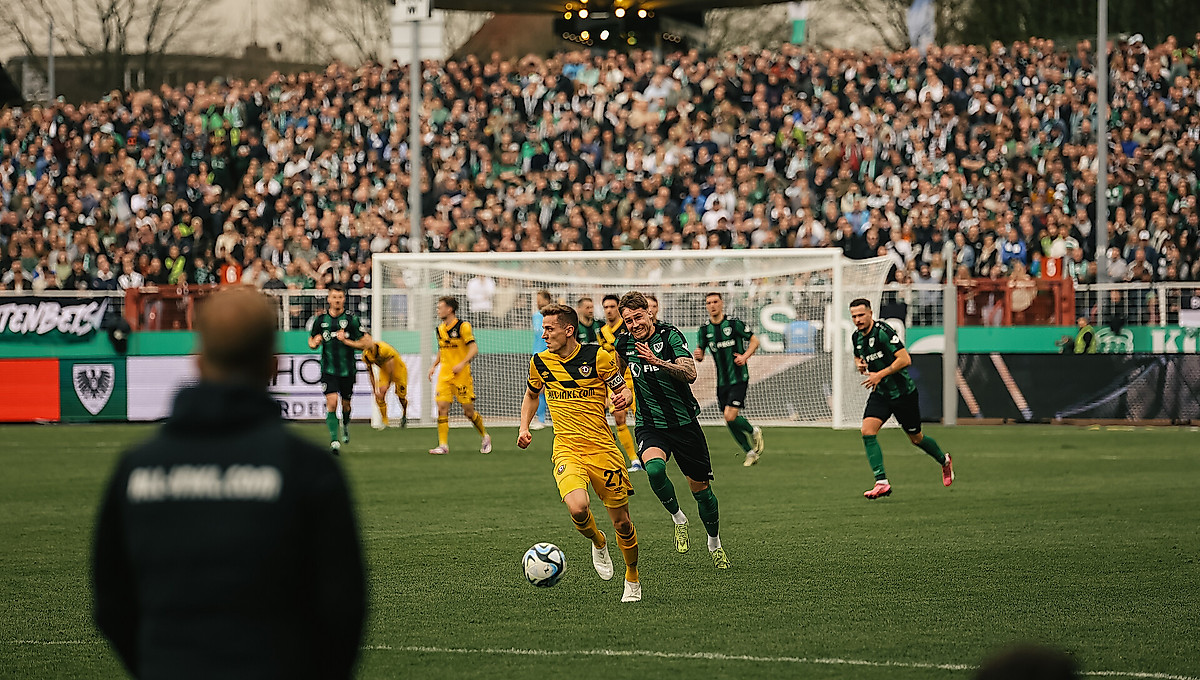 In einer umkäpmften Schlussviertelstunde dauerte es bis in die Nachspielzeit, ehe Schwarz-Gelb wieder richtig gefährlich werden konnte. Ein Arslan-Freistoß von der Strafraumgrenze landete in der Mauer (90.), nach einem verlängerten Ball in die Spitze scheiterte Meißner aus Nahdistanz an Schulze Niehues (90.+4). Kurz darauf war Schluss. Trotz erneut deutlich mehr Spielanteilen und Torchancen unterlag Dynamo bei Preußen Münster mit 0:1 (0:0).