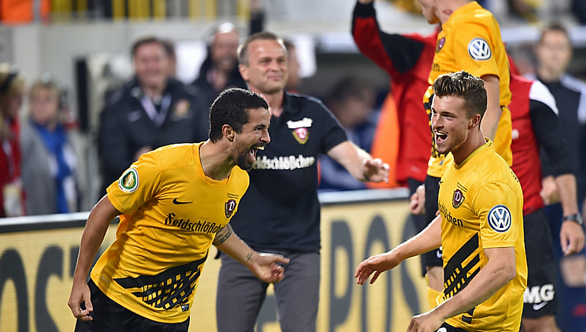 Nils Teixeira wurde für das Voting zum Pokalhelden der 1. Runde 2014/15 für den DFB-Pokal „Walk of Fame” nominiert. Der Defensivspieler traf am Montag beim 2:1-Pokalsieg gegen den FC Schalke 04 in der 50. Minute nach Vorlage von Luca Dürholtz mit einer sehenswerten Direktabnahme von der Strafraumgrenze ins lange Eck zum 2:0. Das Volleytor des 24-Jährigen entging auch den Redakteuren des Online-Portals dfbpokal-walkoffame.de nicht, die Nils kurzerhand in die Kandidatenliste aufnahmen. Dynamo-Fans können bis Freitag, 22. August 2014 (12 Uhr), für Nils auf dfbpokal-walkoffame.de ihre Stimme abgeben.Neben Nils Teixeira stehen Magdeburgs 1:0-Siegtorschütze gegen den FC Augsburg, Christian Beck, sowie die fünffachen Torschützen Stefan Kießling (für Bayer Leverkusen gegen Alemannia Waldalgesheim/6:0) und Sven Schipplock von der TSG 1899 Hoffenheim (traf fünfmal beim 9:0 gegen den USC Paloma) zur Wahl. Der von den Fans gewählte Pokalheld der 1.Runde des DFB-Pokals 2014/15 hat die Chance, nach dem Finale mit seinen Fußabdrücken auf dem DFB-Pokal „Walk of Fame” vor dem Olympiastadion Berlin verewigt zu werden und dann in einer Reihe mit Fußballgrößen wie Günter Netzer, Hans Meyer oder auch Thomas Schaaf zu stehen. Hier geht’s zur Abstimmung.