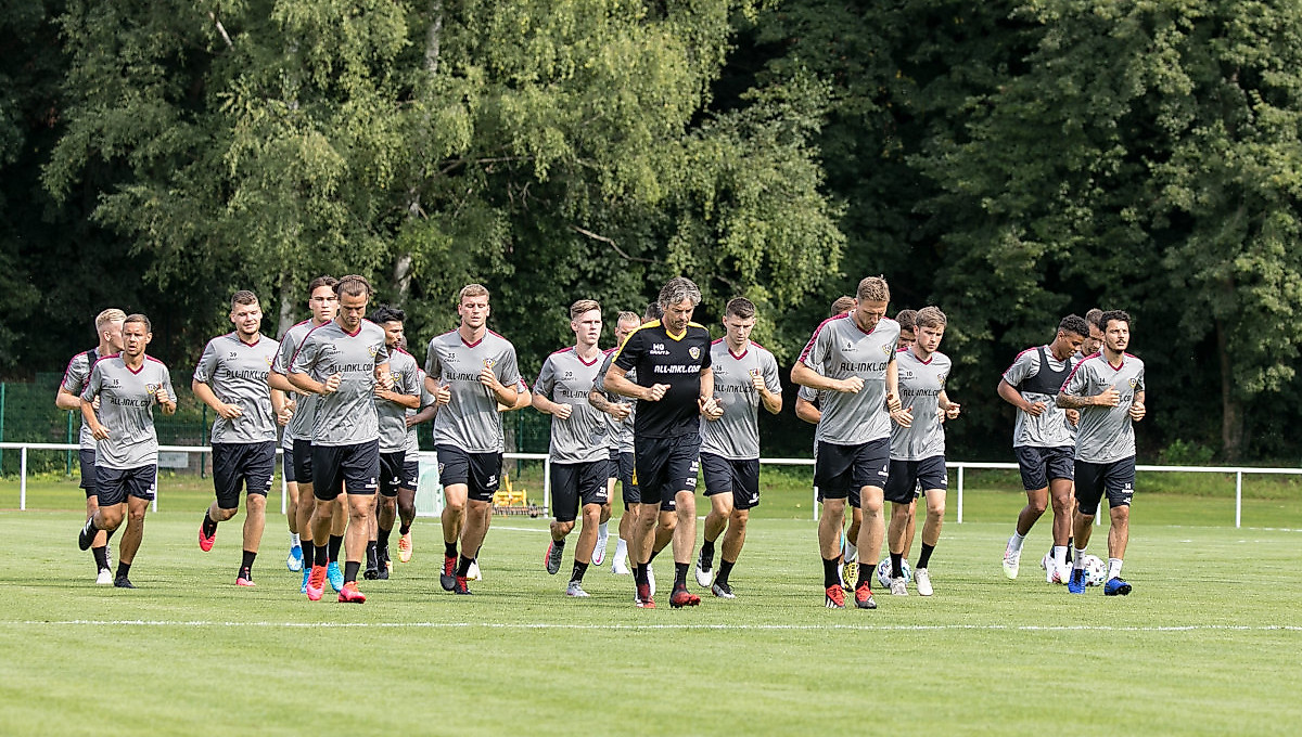 Die SG Dynamo Dresden hat am Mittwoch Quartier für das diesjährige Sommertrainingslager in Heilbad Heiligenstadt bezogen und die erste Trainingseinheit im Eichsfeld absolviert.Nachdem am Morgen zunächst die obligatorischen Corona-Tests bei allen 39 Mitgliedern des Dynamo-Tross in der AOK PLUS Walter-Fritzsch-Akademie durchgeführt wurden, brach das Team gegen 9.30 Uhr im neu designten Mannschaftsbus in Richtung Thüringen auf.