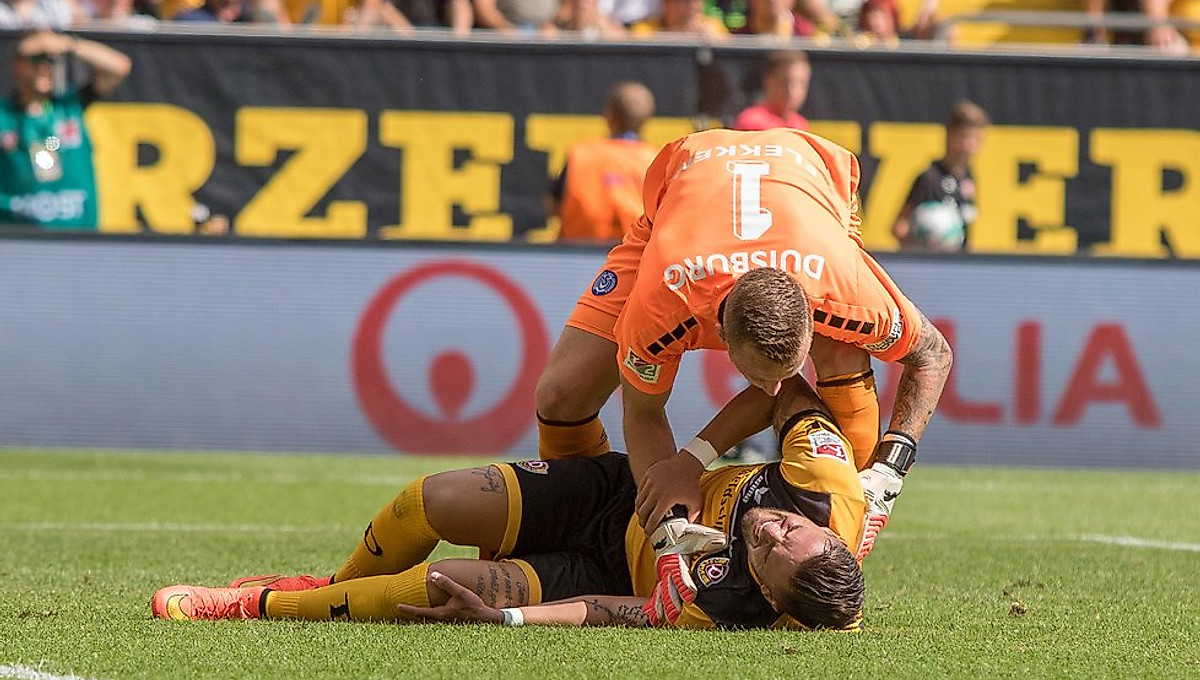 Pascal Testroet hatte sich in der 23. Spielminute des Zweitliga-Heimspiels gegen den MSV Duisburg am Sonntag bei einem unglücklichen Zusammenprall mit dem gegnerischen Torhüter eine schwere Verletzung des linken Kniegelenks zugezogen. Dabei erlitt der 26-Jährige einen Riss des vorderen Kreuzbandes sowie des Innenbandes und eine Läsion des Innenmeniskus‘. Das ergaben umfangreiche Untersuchungen unter der Leitung von Prof. Dr. Felix Bonnaire im Krankenhaus Dresden-Friedrichstadt.