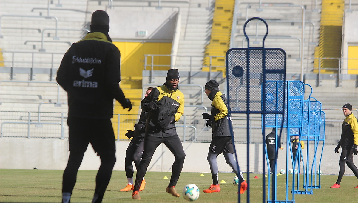 Fünf Einheiten setzte Dynamos Cheftrainer Uwe Neuhaus in Vorbereitung auf das Heimspiel gegen den SV Darmstadt (Freitag, 2. März; 18.30 Uhr) an. Starteten die Schwarz-Gelben am Montag mit einer intensiven Laufeinheit in die Woche, so lag am Dienstag der Fokus auf dem Passspiel.Nächtliche Temperaturen weit unter minus 10 Grad machten den Trainingsplatz im Großen Garten unbespielbar. Kurzerhand wurde die Einheit am Dienstagmorgen ins DDV-Stadion verlegt. Die gute Rasenbeschaffenheit in Dynamos Wohnzimmer war notwendig für das geplante Arbeitspensum.