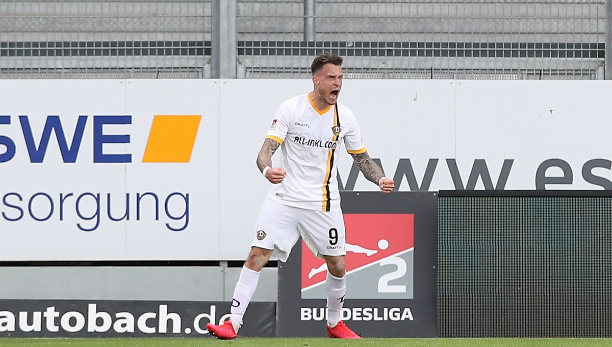 Das Fußball-Fachmagazin kicker hat Patrick Schmidt am 30. Spieltag zum zweiten Mal in dieser Saison in die „Elf des Tages“ berufen.Der 26-Jährige Angreifer erlebte mit der SGD beim 3:2-Auswärtssieg beim SV Wehen Wiesbaden ein Wechselbad der Gefühle: Schmidt erzielte erst den zwischenzeitlichen 2:2-Ausgleich selbst (44.), bereitete den 3:2-Siegtreffer von Simon Makienok in der 89. Minute entscheidend per Kopfball-Verlängerung vor und sah in der vierten Minute der Nachspielzeit schließlich die Gelb-Rote-Karte.