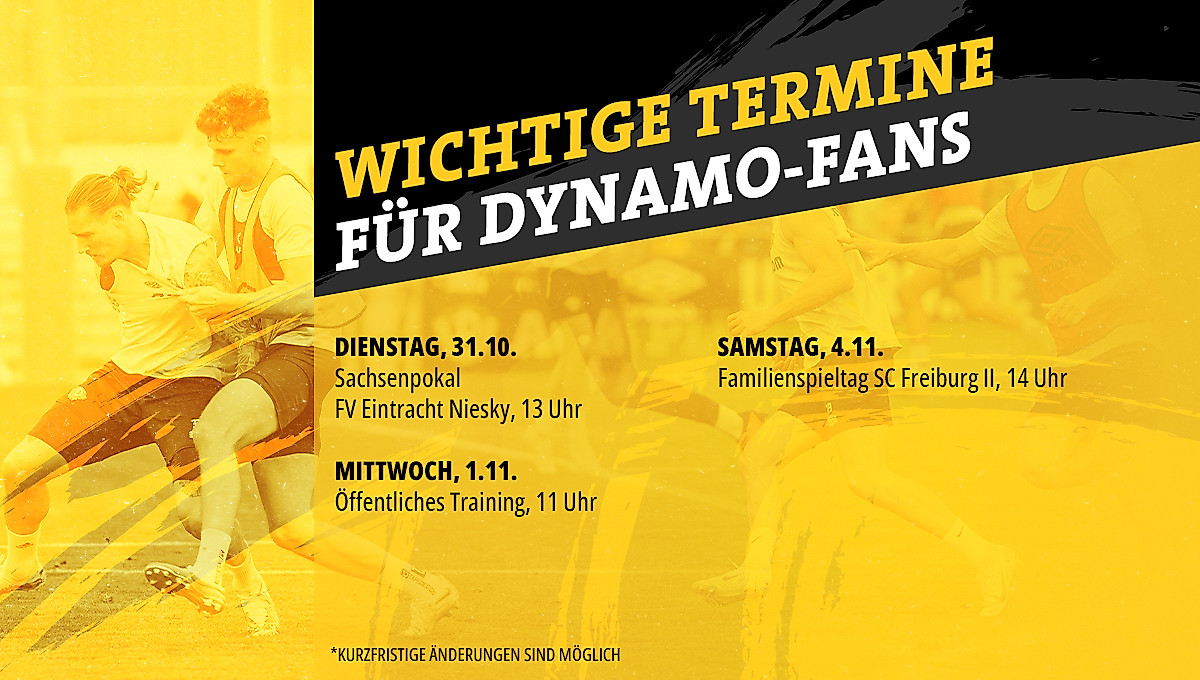 In der dritten Runde des Sachsenpokals reist Dynamo am Dienstag, dem 31. Oktober, in die Oberlausitz zum FV Eintracht Niesky. Anpfiff am Reformationstag in der Jahnsportstätte ist 13 Uhr.