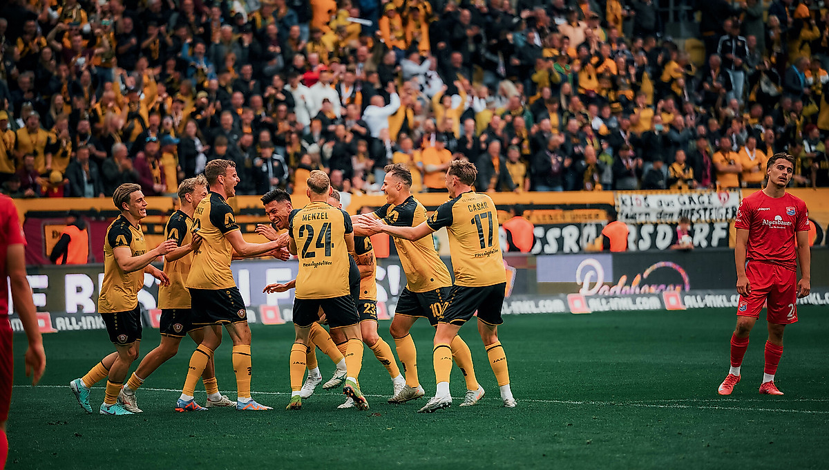 Mit der deutlichen 3:0-Führung spielte Schwarz-Gelb den Heimsieg sicher nach Hause und wurde dabei von einer fantastischen Atmosphäre getragen, die auch nach dem Abpfiff noch lange nicht zu Ende war. Mannschaft und Trainerteam ließen sich vor dem K-Block gebührend feiern - für drei Punkte, eine herausragende Saison und den hochverdienten Aufstieg. Danke an alle, die unsere Farben auf diesem Weg unterstützt haben. WER SPIELT ZWEETE LIGA? DY-NA-MO!