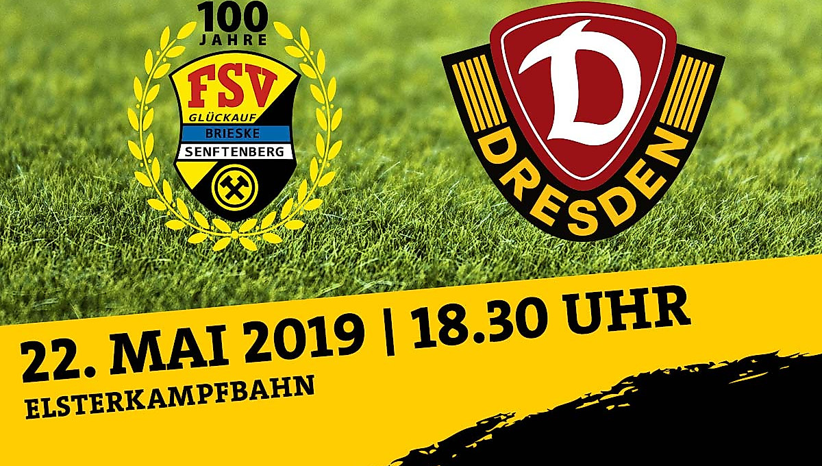Anlässlich des 100-jährigen Vereinsjubiläums des FSV „Glückauf“ Brieske/Senftenberg, dem Jugendclub von SGD-Youngster Justin „Leo“ Löwe, absolviert Dynamo Dresden am 22.05. ein Testspiel in der Niederlausitz.Anstoß in der Elsterkampfbahn, der Heimspielstätte des brandenburgischen Landesligisten, ist um 18.30 Uhr.