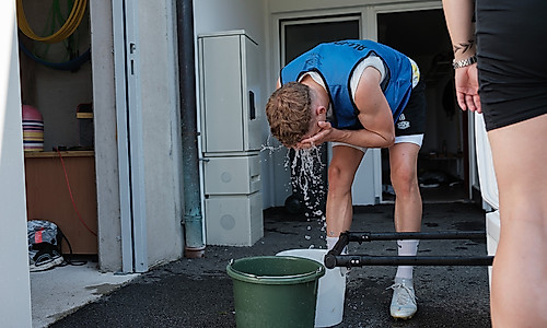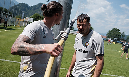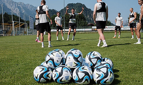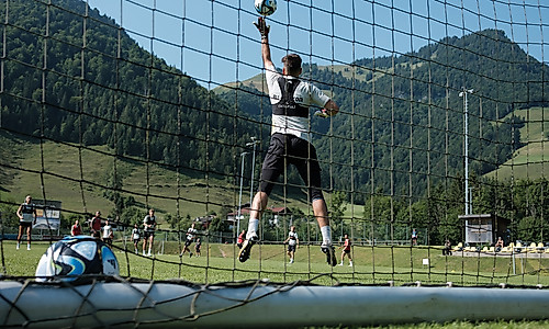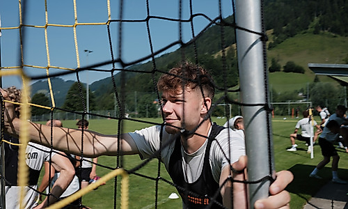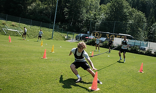Wie bereits am Montag startete die erste Einheit um 10 Uhr, bei schweißtreibenden Temperaturen – es war bislang der heißeste Tag am Walchsee – ging es nach der Erwärmung in drei Gruppen à sieben Spielern weiter. Während eine Gruppe unter der Anleitung von Athletiktrainer Matthias Grahé Lauf- und Sprintübungen absolvierte, waren die anderen Gruppen mit Spielformen beschäftigt.