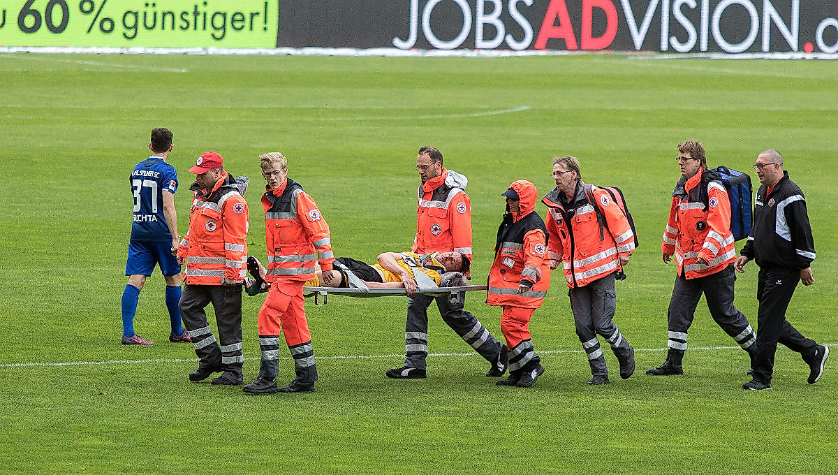 Stefan Kutschke hat sich die Kopfverletzung in der 20. Spielminute bei einem Zusammenprall in Höhe der Mittellinie mit seinem Gegenspieler Benedikt Gimber zugezogen, der das Spiel ebenfalls nicht fortsetzen konnte. Beide Spieler wurden auf dem Platz und im Stadion medizinisch behandelt und umgehend ins Krankenhaus gebracht.