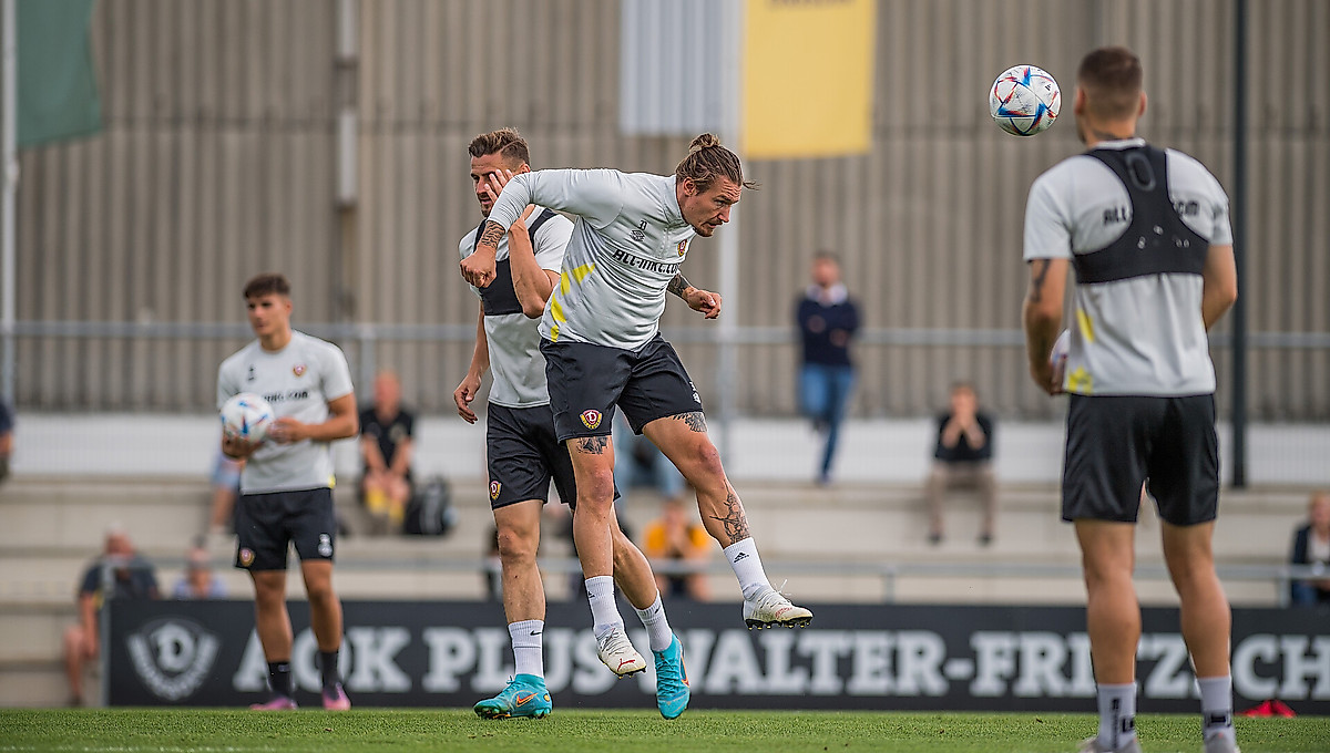 Nach dem Auslaufen am Sonntag und einem trainingsfreien Montag standen am Dienstagnachmittag vor allem taktische Inhalte auf dem Programm der SGD. Nach einer Erwärmung unter Leitung von Fitness- und Konditionstrainer Matthias Grahé wurde zunächst in engem Feld auf Ballhalten gespielt, ehe Cheftrainer Markus Anfang seine Mannschaft in zwei Gruppen einteilte.