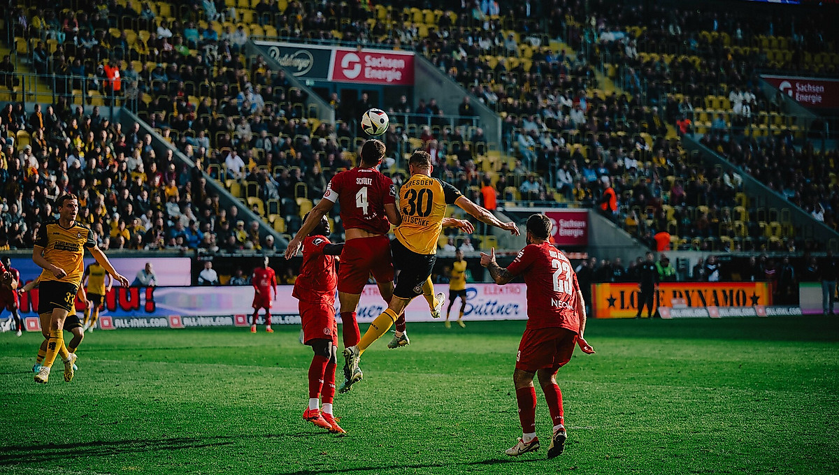 In der Schlussphase warf Dynamo alles nach vorn. Flanke um Flanke flog in die gegnerische Gefahrenzone und als alle bereits mit der Niederlage rechneten, schlug Sterner noch einen Ball in die Mitte. Dort stieg Kutschke am höchsten und traf zum viel umjubelten Ausgleich in allerletzter Minute (90.+6).