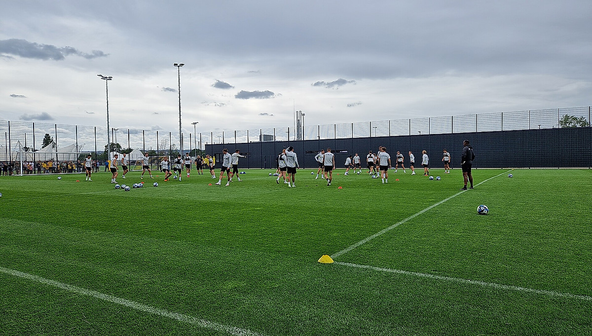Punkt 15 Uhr startete dann das Nachmittagstraining im „Käfig“, unter den Augen von rund 60 Dynamo-Fans. Nach einer kurzen Erwärmung ging es dabei zunächst im Sechs-gegen-Zwei ums Passspiel auf engem Raum. Anschließend wurde die Mannschaft in drei Gruppen geteilt. Während je zwei davon in einer Spielform gegeneinander antraten, trainierte die Dritte am Kopfballpendel mit Co-Trainer Heiko Scholz.