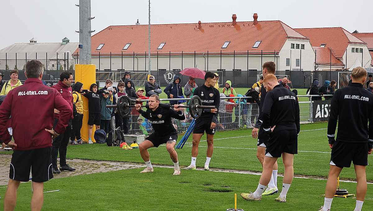 Trotz leichtem Nieselregen folgten am Donnerstagvormittag rund 200 Kinder aus dem Dynamoland der Einladung der Giraffenbande und besuchten in der Ferienzeit mit ihren Eltern und Kita-Betreuern die öffentliche Trainingseinheit der Drittliga-Profis der SGD.