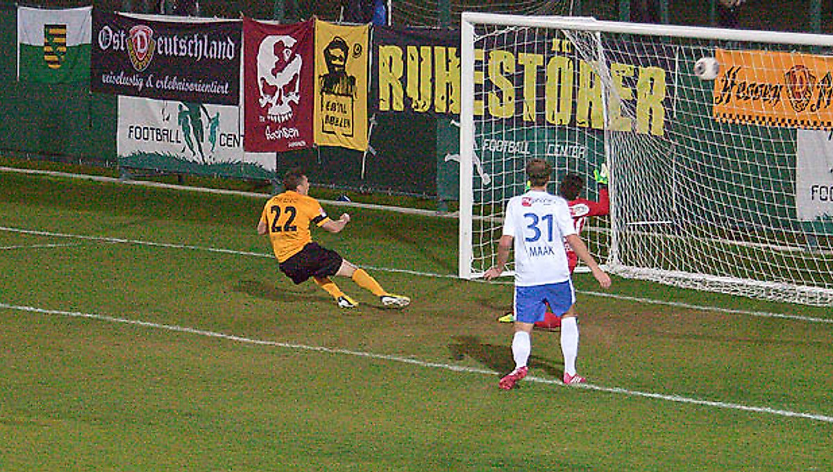 Zunächst sorgten die mitgereisten Dynamo-Fans für mächtig Stimmung. Der „Zwölfte Mann“ erklang aus gut 40 Kehlen und gab das Startsignal für den letzten Testlauf im Trainingslager über 90 Minuten. Kurz nach halb fünf ertönte der Anstoß. Zunächst machte die Mannschaft aus Österreich viel Betrieb. Sascha Boller, einst für die TSG Hoffenheim und Greuther Fürth aktiv, setzte sich gleich zweimal auf der rechten Seite durch. Beide Eingaben konnten von den Offensivkräften der Grödig-Elf aber nicht verwertet werden und gingen am Tor von Benny Kirsten vorbei (3., 5.). Dynamo musste sich in der Anfangsphase des Spiels erst einmal finden, verzeichnete nach einer Viertelstunde die ersten Torannäherungen. Zunächst wurde der Ball nach einer Kempe-Ecke vor dem einköpfbereiten Poté geklärt (15.), ehe der Schlussmann beim Kopfball von Robert Koch all sein Können aufbringen musste. Die Vorlage kam abermals von Tobias Kempe.