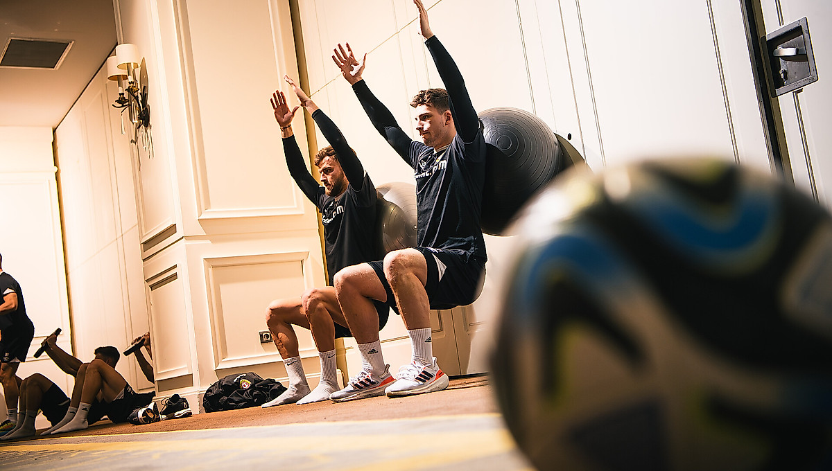 Stattdessen wurde die Mannschaft in zwei Gruppen eingeteilt. Während einige Spieler Athletikübungen im Hotel absolvierten, stand für die anderen Akteure Intervallläufe an. Anschließend wurden die Gruppen getauscht.