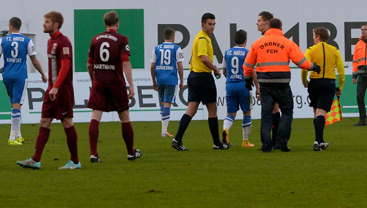 In der Folge heizte sich die Atmosphäre in Dynamos Wohnzimmer mächtig auf. Das Spiel war von hart geführten Zweikämpfen und vielen Unterbrechungen geprägt. Angetrieben von den Fans und der Wut im Bauch kam Dynamo bis zum Pausenpfiff noch ein paar Mal gefährlich vor das Tor. Die beste Chance vergab der auffällige Berko, als er von Fabian Müller sehenswert eingesetzt wurde und aus spitzem Winkel mit viel Risiko abzog, aber an Vollath scheiterte.