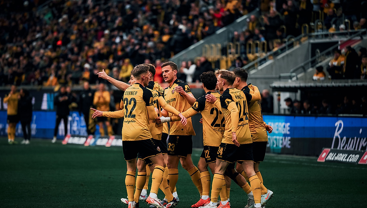 Kurze Zeit danach war Schluss und die 27.030 Zuschauer im Rudolf-Harbig-Stadion konnten den verdienten Heimdreier bejubeln und mit der Mannschaft feiern.