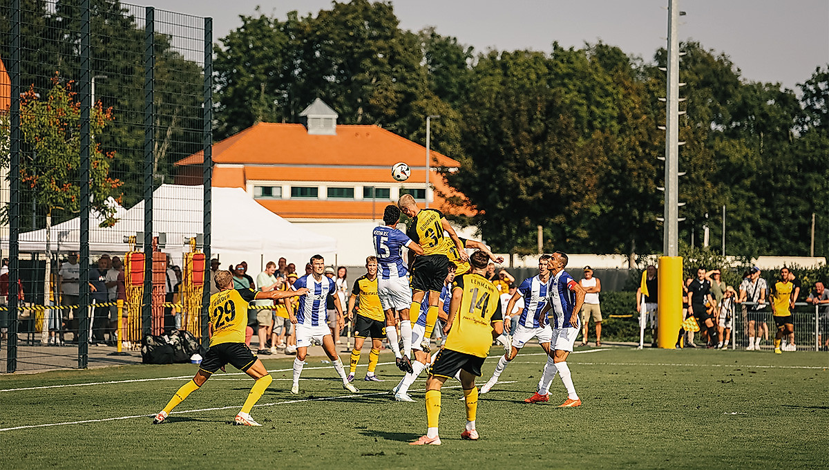 Im Anschluss bot sich den rund 300 Zuschauerinnen und Zuschauern in der AOK PLUS Walter-Fritzsch-Akademie ein ähnliches Bild. Dynamo überzeugte mit viel Ballbesitz, während die Berliner auf Umschaltmomente lauerten. Kurz vor der Pause glichen die Gäste dann quasi aus dem Nichts durch Oliver Rölke aus (45.+1). Direkt im Gegenzug hatte Kutschke auf der Gegenseite die direkte Antwort auf dem Fuß, Torhüter Mohwinkel blieb im Eins-gegen-Eins aber Sieger (45.+1). So ging es mit einem 1:1 in die Halbzeitpause.