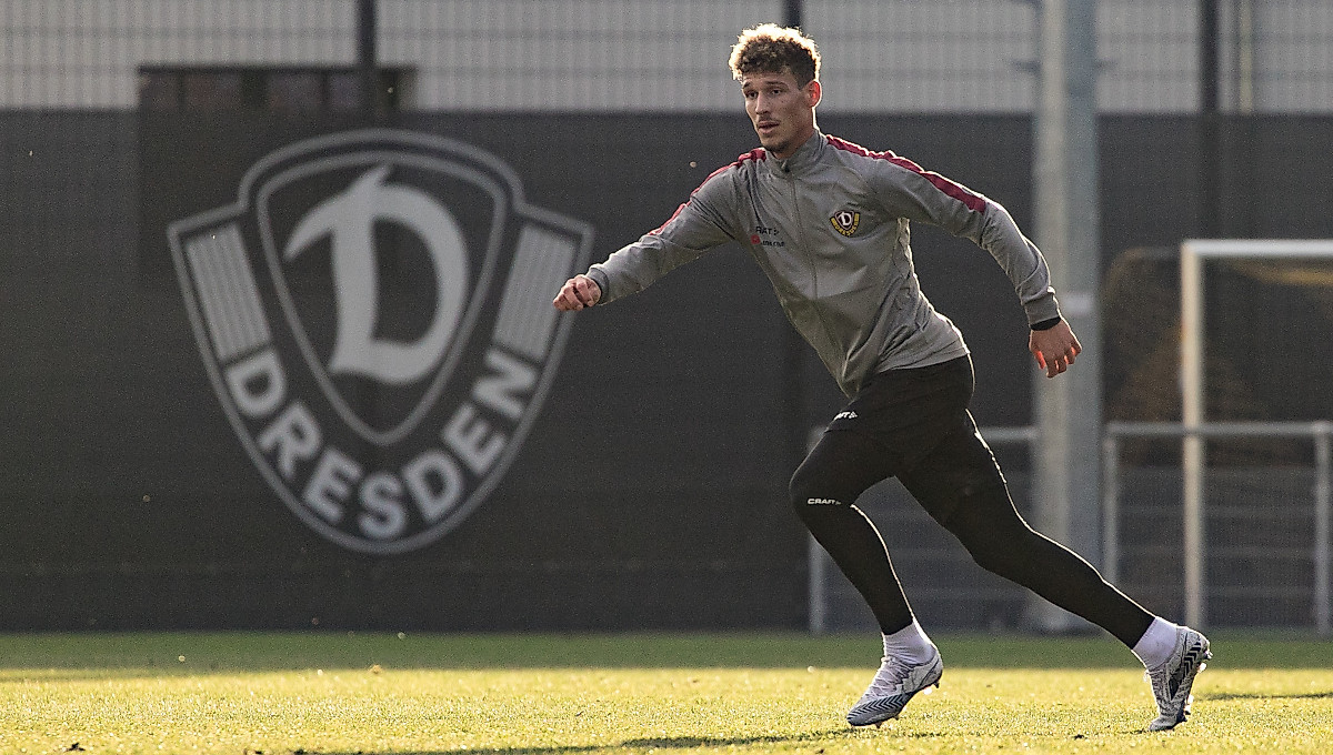 Nach der Vertragsunterzeichnung in der AOK PLUS Walter-Fritzsch-Akademie und dem obligatorischen Foto mit seinem neuen Trikot, auf dem fortan die Rückennummer 8 prangt, ließ sich Mörschel nicht lang bitten und stieg direkt ins Mannschaftstraining von Dynamos Drittliga-Profis ein.