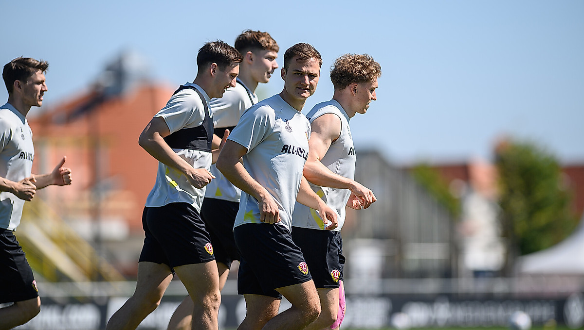 Nachdem die Mannschaft von Cheftrainer Markus Anfang im Anschluss an das Spiel in Zwickau zur Regeneration zwei Tage frei bekommen hatte, stand am Mittwoch, dem 17. Mai, der Trainingsauftakt in die Himmelfahrtswoche auf dem Programm. Vor den Augen von rund 100 Dynamo-Fans wurde in der AOK PLUS Walter-Fritzsch-Akademie zunächst locker trainiert, denn auf die Profis wartet in der restlichen Woche noch ein straffes Programm.