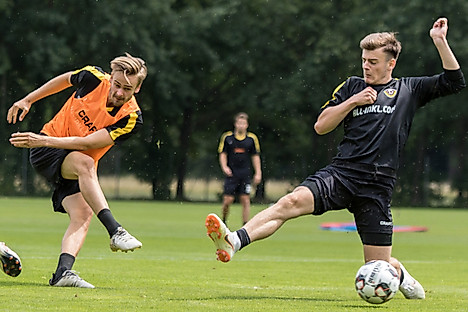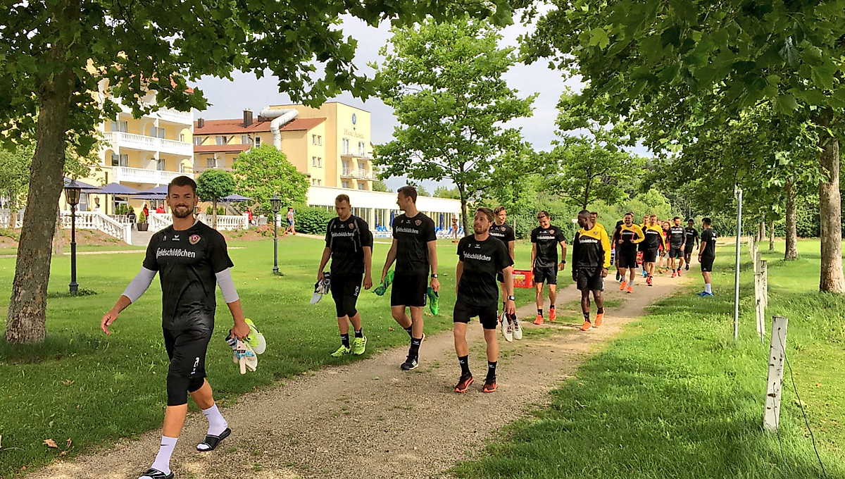 Nach etwas mehr als fünfstündiger Anreise unter Dauerregen erreichte der Dynamo-Tross am Dienstag kurz nach 13 Uhr das Sommertrainingslager im bayerischen Bad Gögging. 26 Spieler, Trainerteam und Betreuer stiegen aus dem Mannschaftsbus – und begrüßten zuerst Torwart Markus Schubert, der direkt von der DFB-U19-Auswahl angereist und schon am Vormittag eingetroffen war.