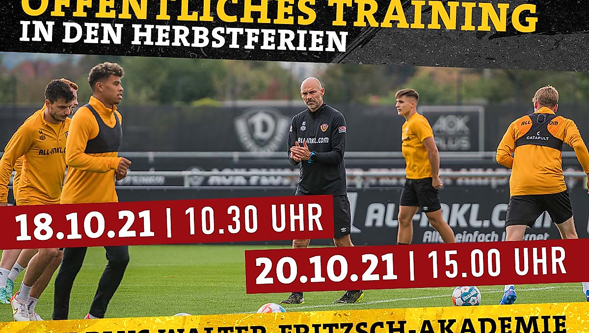 Sachsen startet in die Herbstferien – und die SG Dynamo Dresden bietet zwei öffentliche Trainingseinheiten an.Am Montag, den 18. Oktober 2021, trainieren die Schwarz-Gelben vormittags – Beginn ist 10.30 Uhr.
