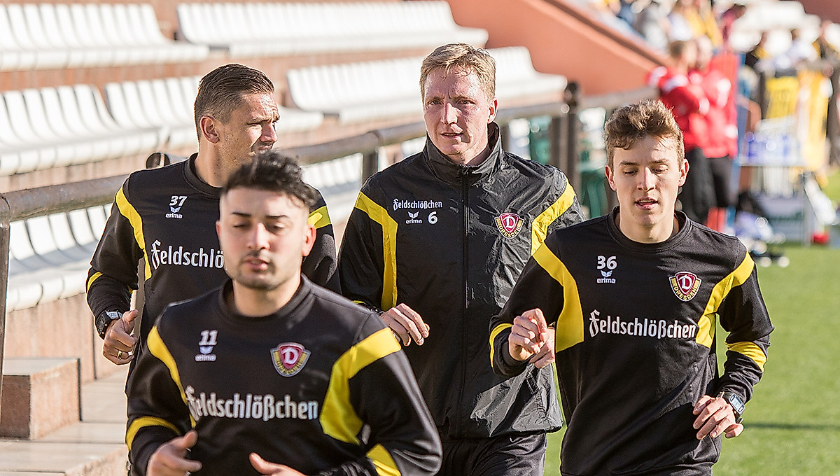 An Tag 2 im Wintertrainingslager der SGD gab es zwei Trainingseinheiten – und zwei unverhoffte Begegnungen. Doch der Reihe nach. Nach dem gemeinsamen Frühstück brachte ein Bus die Schwarz-Gelben um 9.35 Uhr vom Teamhotel zum Marbella Football-Center, eine Viertelstunde später hatten die Zweitliga-Profis das hervorragende Grün des Trainingsplatzes unter den Füßen.Bei etwas kühleren Temperaturen unter 20 Grad drehte sich die Übungseinheit schwerpunktmäßig um Ballbesitz, Aufbauspiel, Gegenpressing, Passformen und Torabschlüsse.