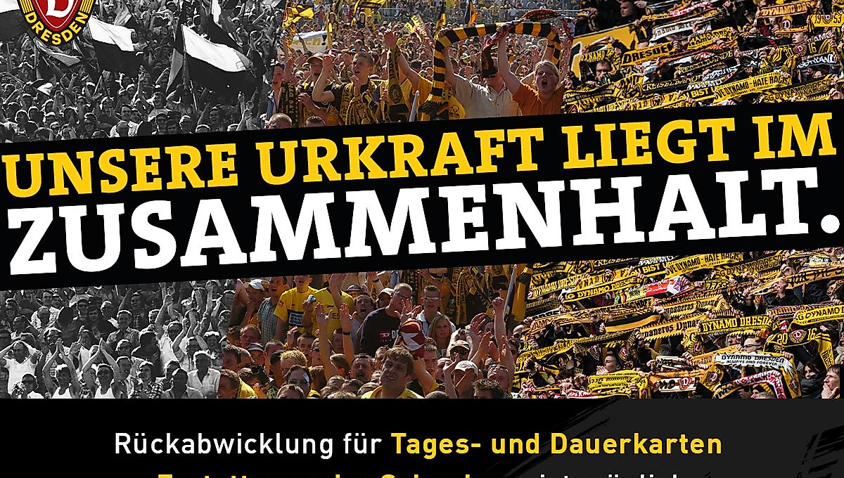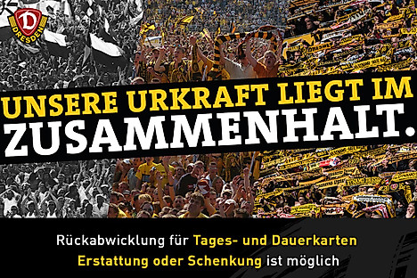 Noch bis zum 30. Juni können Einzelticket- und Dauerkarten-Inhaber über die Verwendung des finanziellen Gegenwertes ihrer Heimspieltickets entscheiden.Mit mehr als 24.000 Einzelspielen wurden auf Dynamos neuer Ticketplattform bisher rund 35 Prozent aller ausstehenden Begegnungen eingereicht.