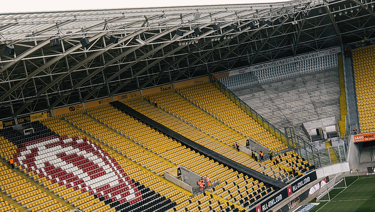 Zum Heimspiel gegen den 1. FC Saarbrücken am 7. April 2024 kommen erstmals die neuen Vario-Sitze im Gästeblock zum Einsatz. Dadurch entstehen rund 1.000 zusätzliche Plätze für Dynamo-Fans.