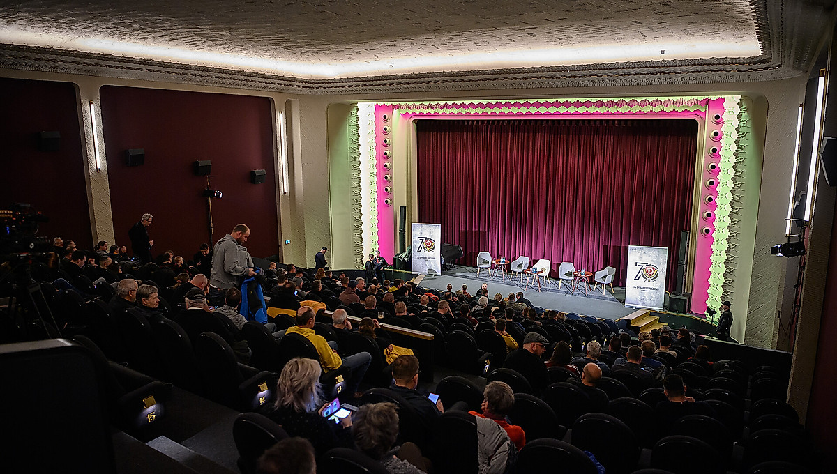 Die Reise in die Vergangenheit beginnt 20 Uhr, der Einlass erfolgt ab 19 Uhr. Auf der Bühne wechseln sich Filmvorführungen und Gespräche der Protagonisten ab. Wie erlebten sie damals den plötzlichen Aufstieg in die Bundesliga? Welche strukturellen Veränderungen brachte die Entwicklung mit sich? Und wie erlebten die Fans der SGD den politischen und sportlichen Umbruch?